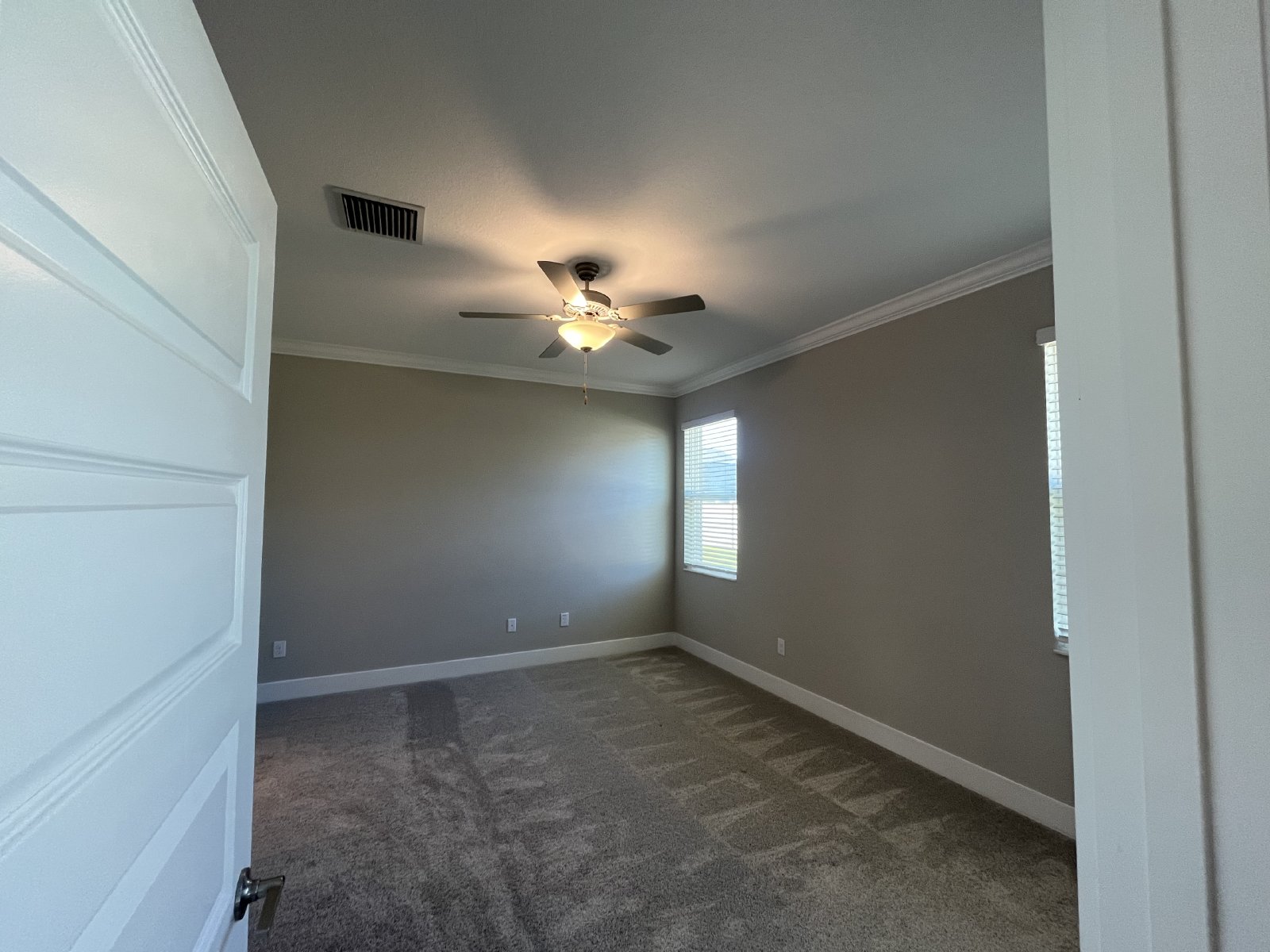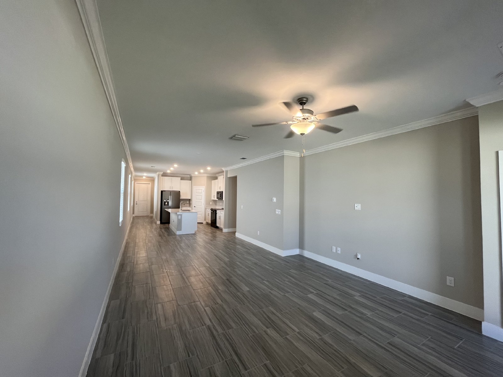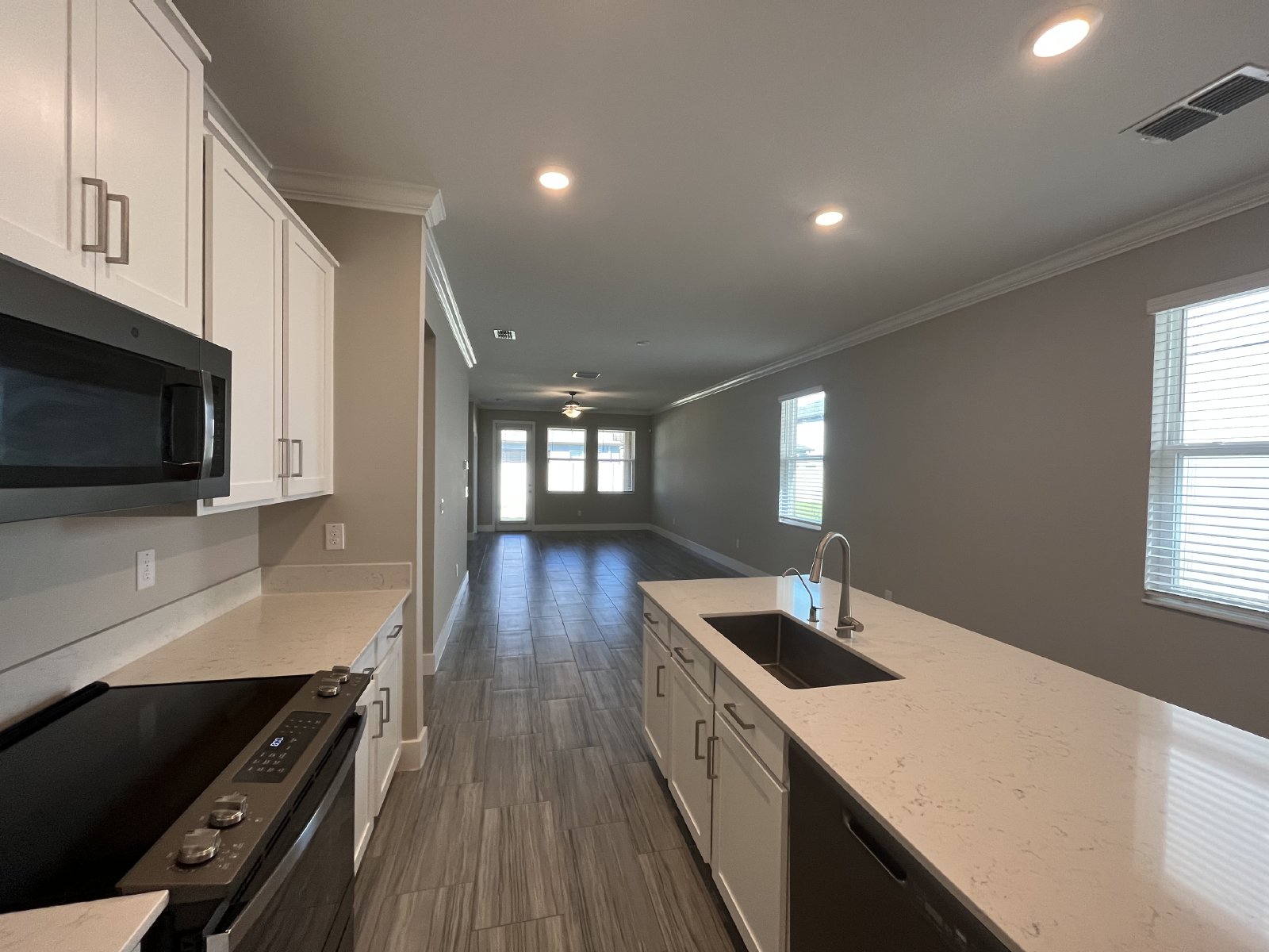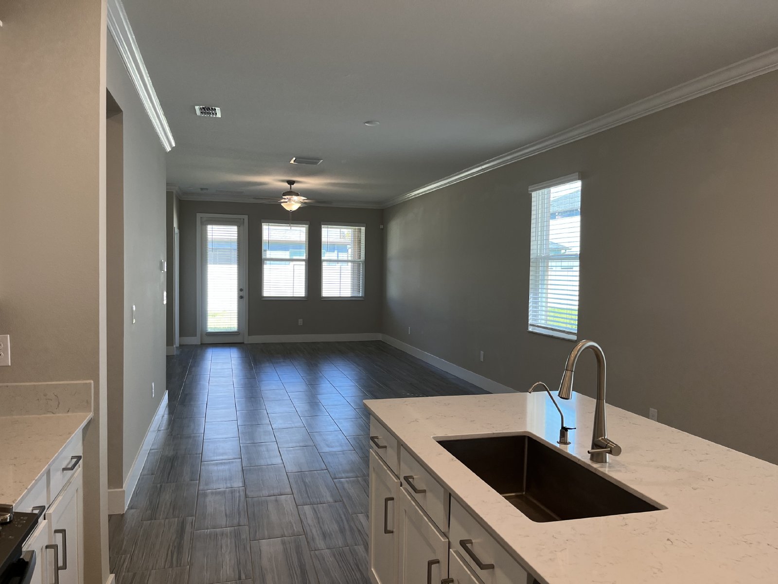 Welcome to the Connerton Village Community. This community offers a 10,000 square foot clubhouse, resort style pool including a kidz zone with a waterpark, a fitness center, Conner Town Cafe, basketball courts, volleyball courts, tennis courts, pickleball courts, an outdoor amphitheater and dog parks. Connerton is a haven for outdoor enthusiasts. Walkers, bikers and runners relish the miles of boardwalks and trails that wind their way through the communities lakes and natural wetlands, making it easy for the residents of Connerton to enjoy the serenity and beauty of the natural landscape. This 2022 built home is a spacious single story home that offers an open floor plan with a living room and open kitchen that features a center island with a breakfast bar, a fridge, stove, dishwasher, and a microwave. The master en-suite bathroom has double sinks and a step in shower. All bedrooms are a nice size and offer high ceilings and ceiling fans. Other features include carpet and tile throughout and a covered patio overlooking a nice sized yard. Do not miss this great new home! It will not last long!