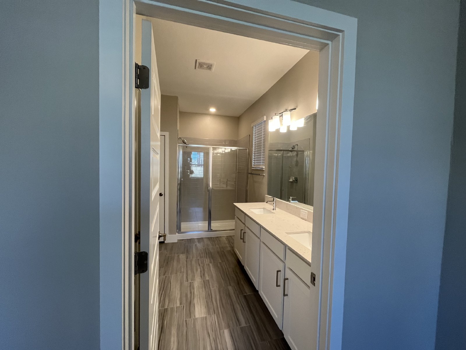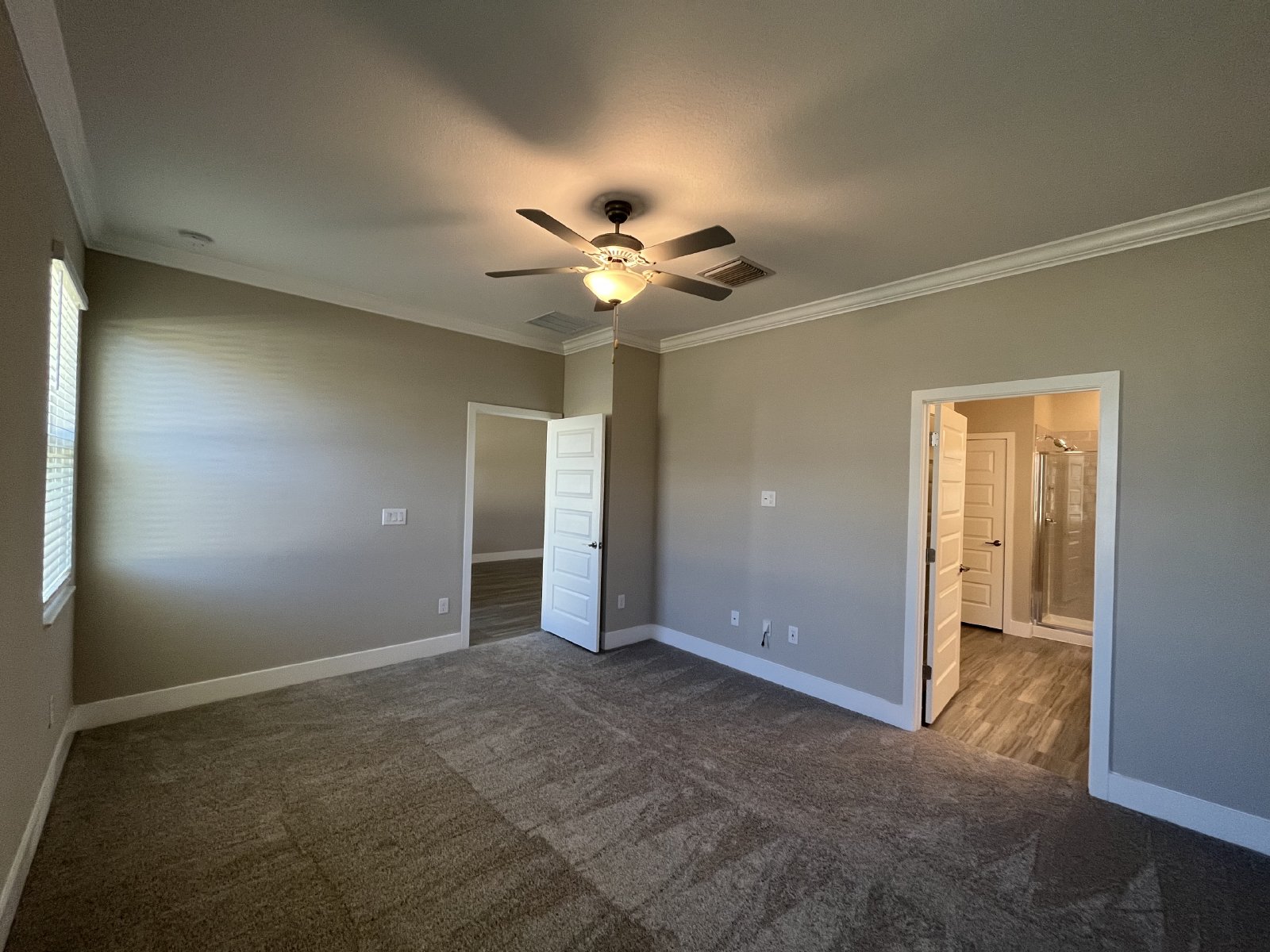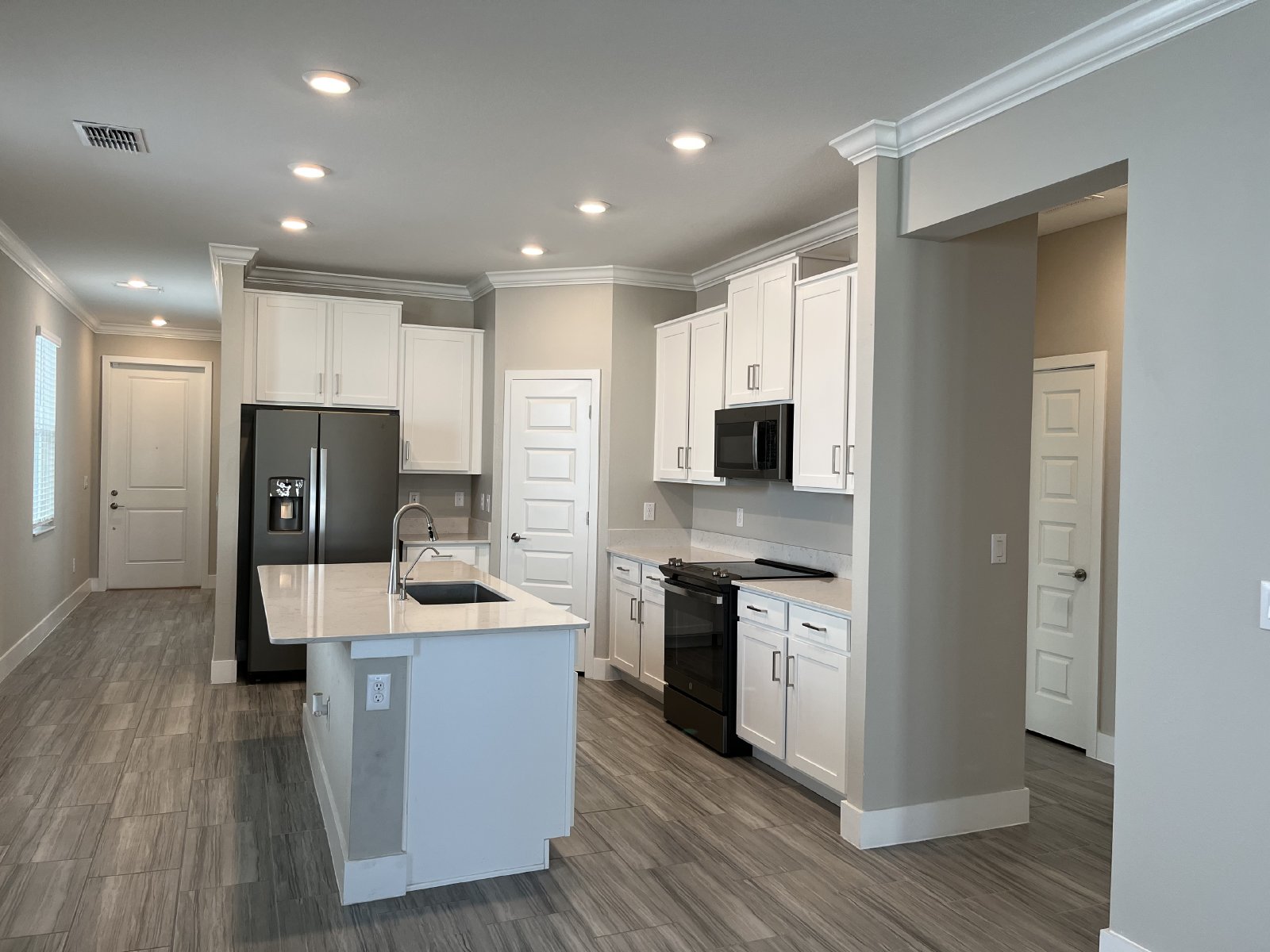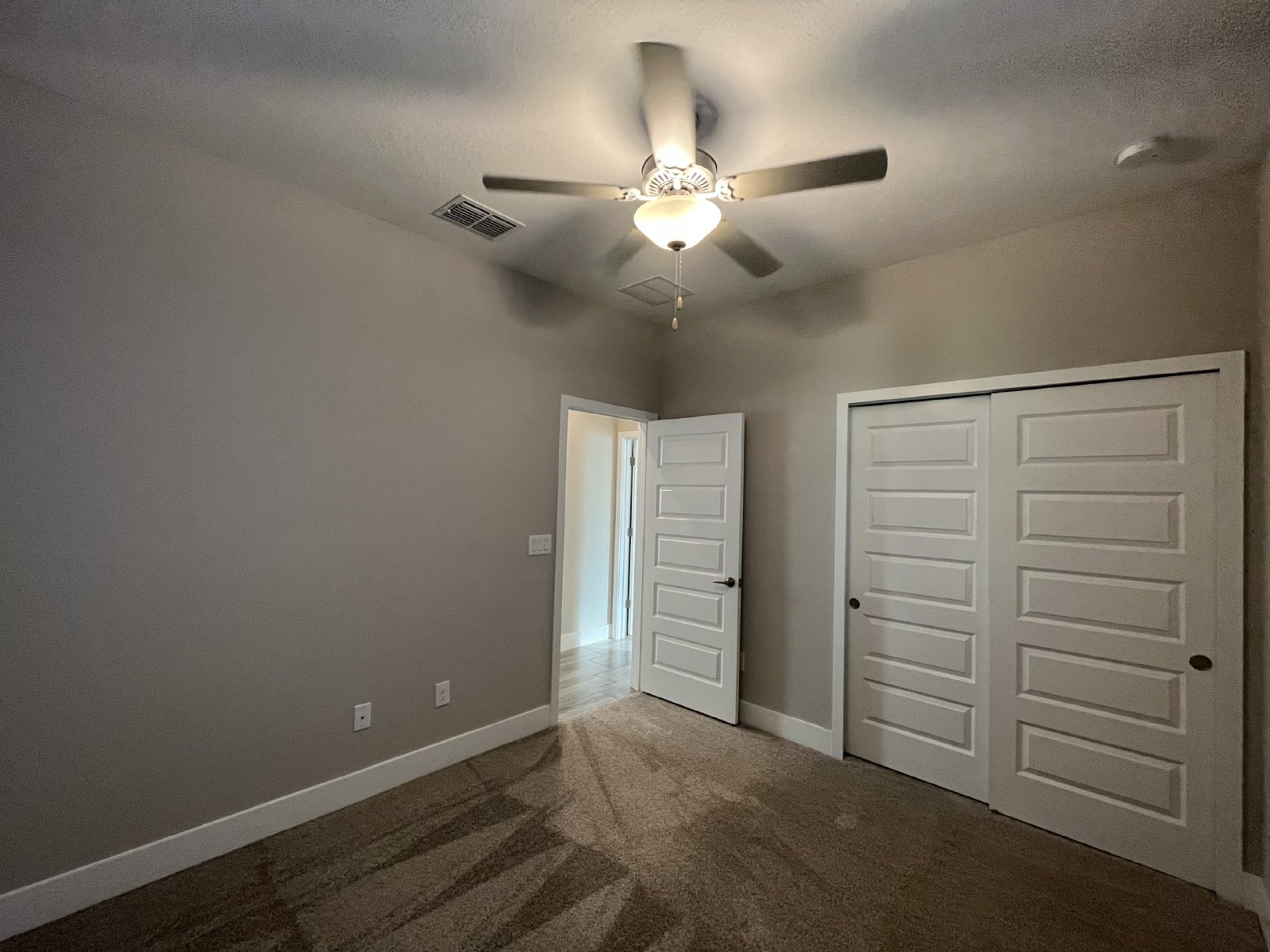 Welcome to the Connerton Village Community. This community offers a 10,000 square foot clubhouse, resort style pool including a kidz zone with a waterpark, a fitness center, Conner Town Cafe, basketball courts, volleyball courts, tennis courts, pickleball courts, an outdoor amphitheater and dog parks. Connerton is a haven for outdoor enthusiasts. Walkers, bikers and runners relish the miles of boardwalks and trails that wind their way through the communities lakes and natural wetlands, making it easy for the residents of Connerton to enjoy the serenity and beauty of the natural landscape. This 2022 built home is a spacious single story home that offers an open floor plan with a living room and open kitchen that features a center island with a breakfast bar, a fridge, stove, dishwasher, and a microwave. The master en-suite bathroom has double sinks and a step in shower. All bedrooms are a nice size and offer high ceilings and ceiling fans. Other features include carpet and tile throughout and a covered patio overlooking a nice sized yard. Do not miss this great new home! It will not last long!
