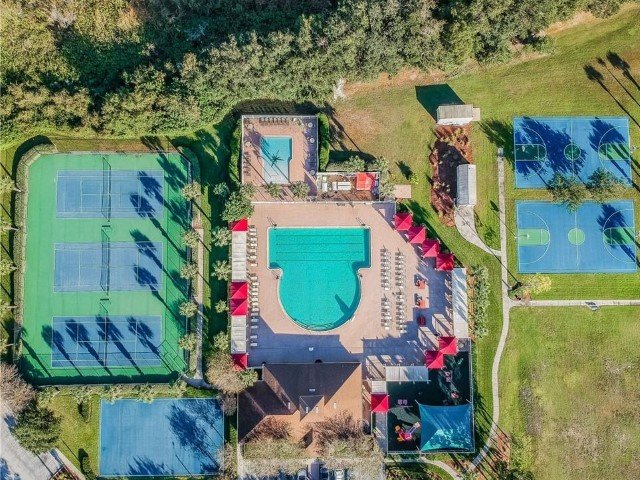 Beautifully laid out and designed, this 4 bedroom, 3 bath pool home is nestled in the gated section of Oakstead in Strathmore Place. Grounds maintenance includes full service of the pool as well as the luscious landscaping. As you pass the decorative fountain and enter through the grand foyer, the view of the sparkling blue pool is there to greet you. An abundance of sliders let natural light in while keeping the Florida heat out. Custom tile flooring and new carpet in the main living room and all bedrooms. Crown molding and custom ceiling plates adorn the master bedroom and den. The den features hardwood and a passthrough to the master bathroom. Master bath features a jacuzzi tub, dual vanities, private water closet, and walk-in shower with grip bars! Double closets in the master bedroom and a door to access the pool area. Come together for a family meal or quick morning coffee in the eat-in kitchen. 42' uppers and granite counters adorn this chef's playroom! Over abundance of storage.